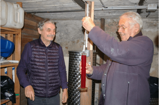 A signaler l’utilisation cette année d’un égrappoir mécanique qui a permis un gain de temps important et surtout favorisé le pressurage du raisin par un éclatement préalable des grains.