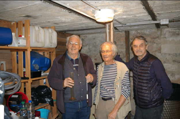 Fait inhabituel, nous avons entrepris de vendanger un raisin noir à jus noir provenant de la taille d’une vigne plantée auprès des ateliers d’artistes résidant dans le parc de MNA. Ce raisin très sucré affichait un potentiel alcoolique de 15° ; la quantité de moût obtenue est de 30 litres. A ce jour, ce futur vin rouge a été traité en parallèle du blanc et l’on est impatient de connaître le résultat final.