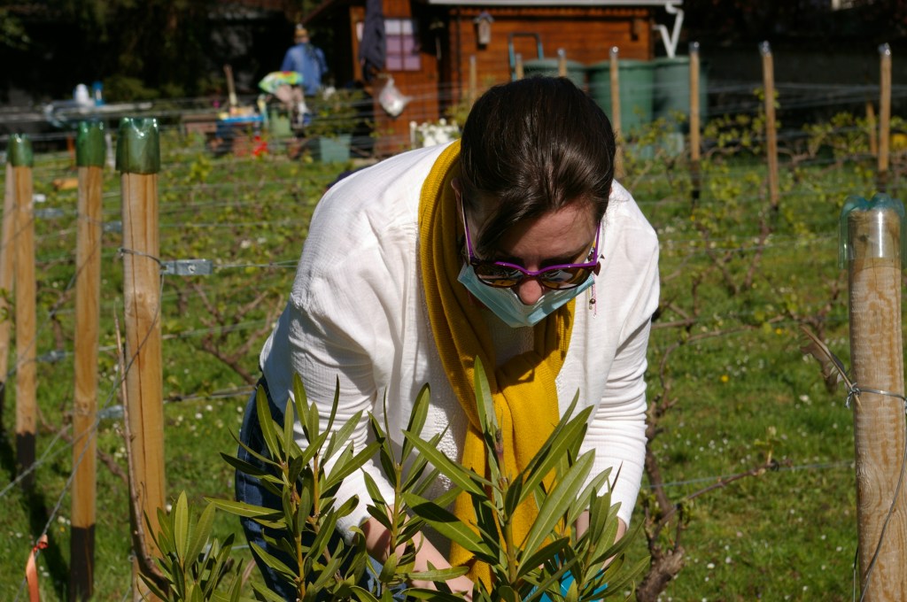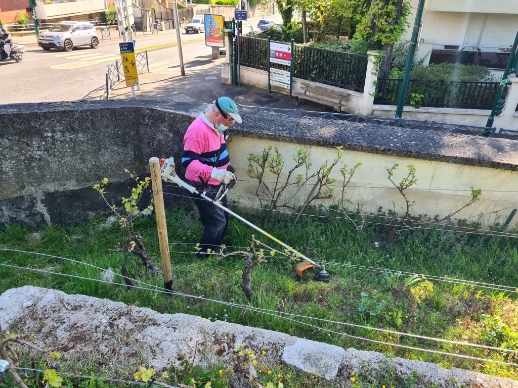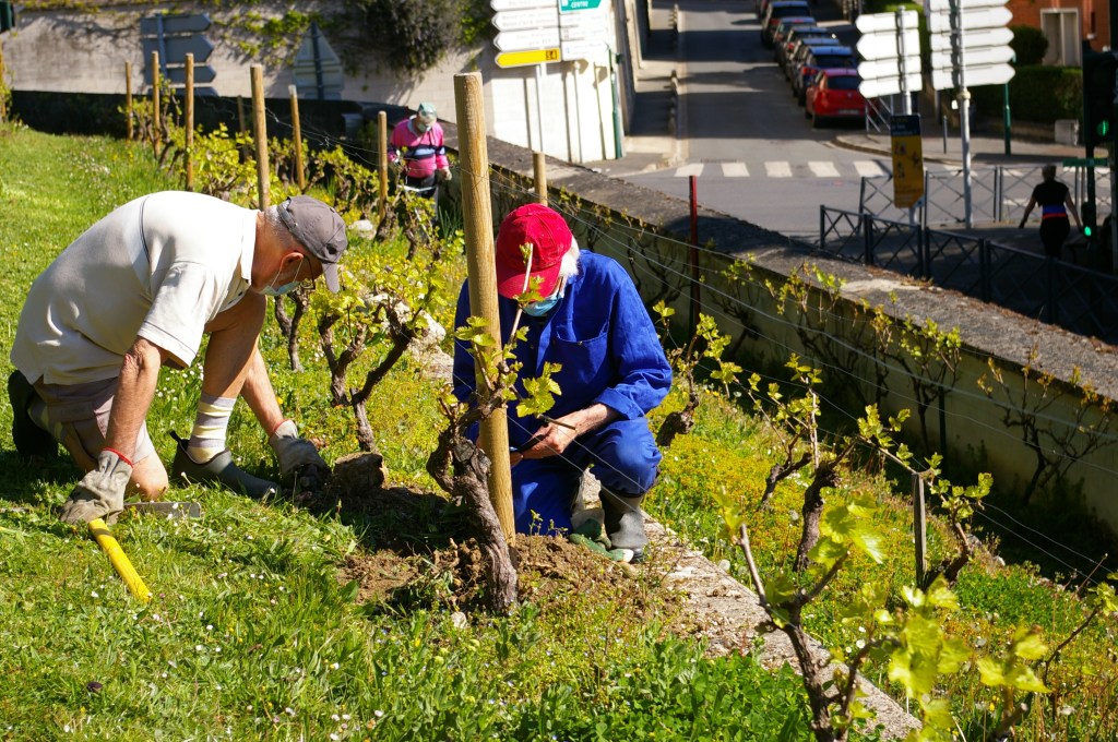Le reste de l’équipe a nettoyé les tours de pied de vigne des mauvaises herbes et des feuilles mortes parfois courageusement à quatre pattes, afin de maintenir un état correct de notre vigne et contribuer à son aspect esthétique.
