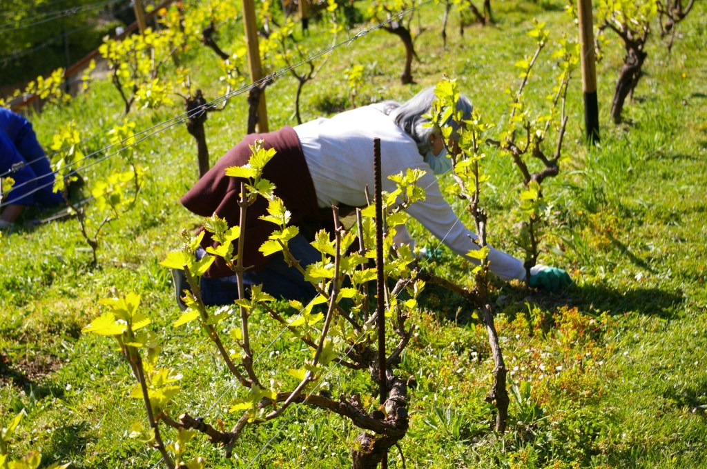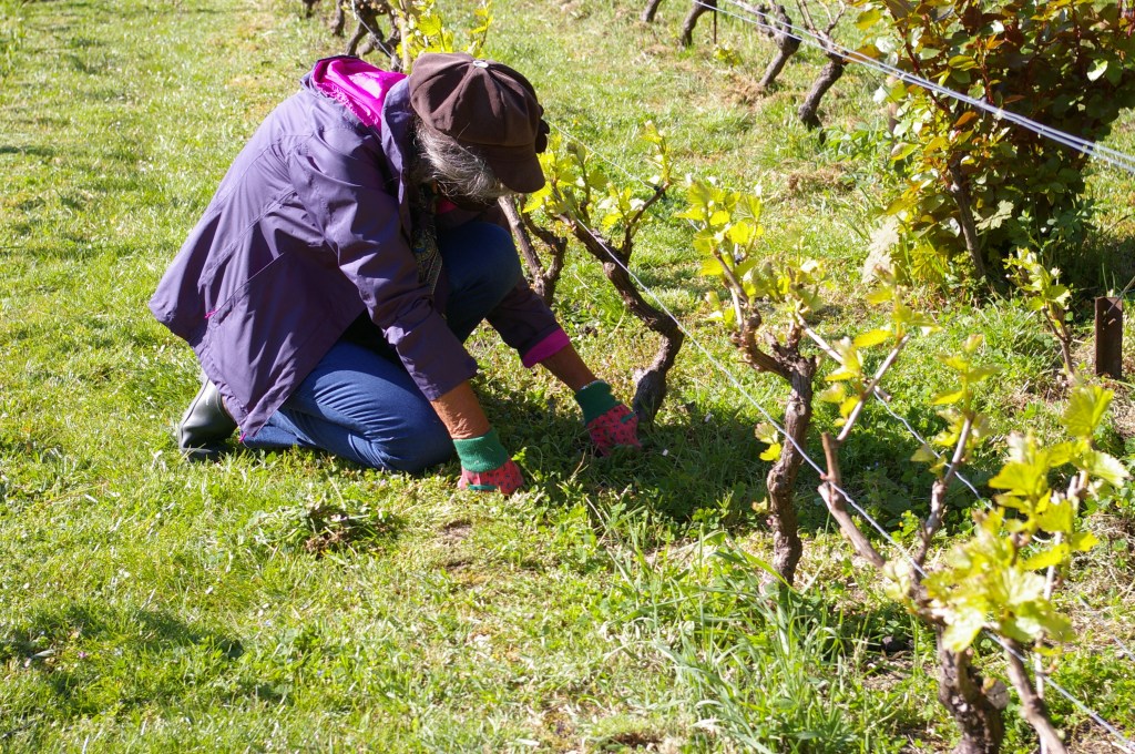 Les feuilles superflues et les gourmands ont été enlevés afin d’économiser la sève et faire en sorte que cette dernière alimente au mieux les grappes. Cela permettra également de favoriser l’ensoleillement des grains de raisin.