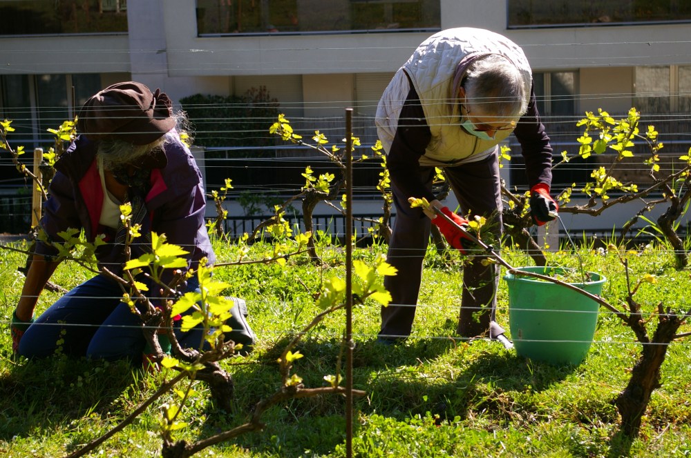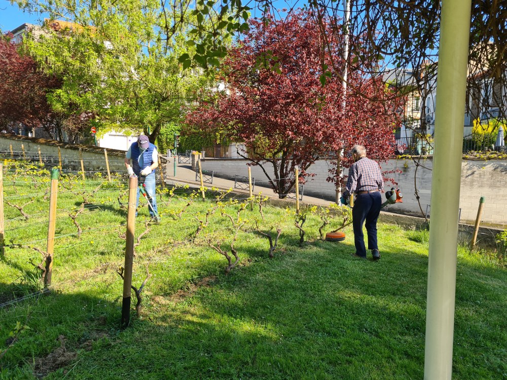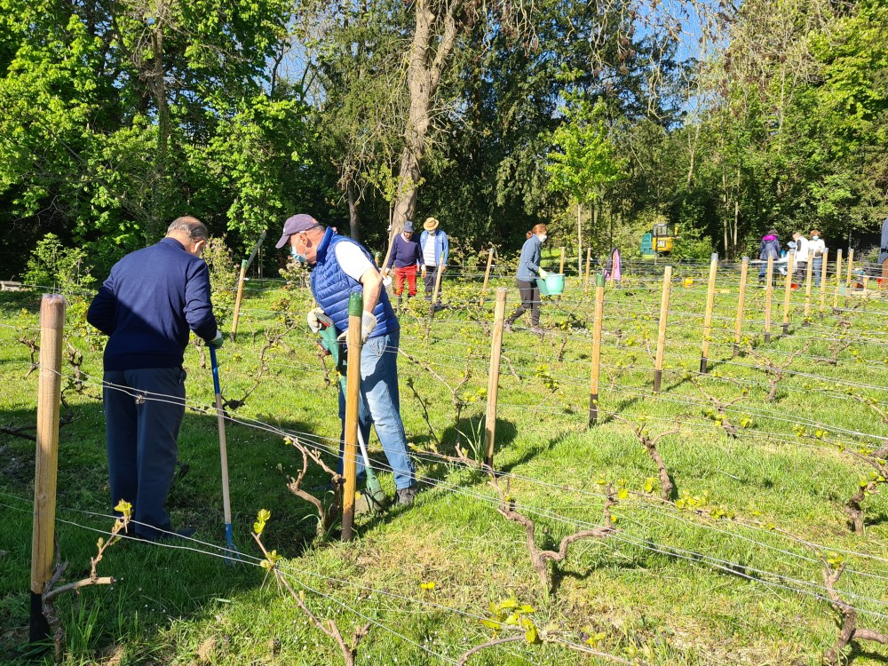 L’équipe du samedi continue de prendre soin de la future cuvée. Après avoir traité et nettoyé la vigne, une quinzaine de jeune plants ont été plantés. Les grappes commencent à pointer le bout de leur nez, ce qui augure de bonnes futures vendanges. La glycine quant à elle s’épanouit sous le soleil, donnant au lieu un air bucolique.