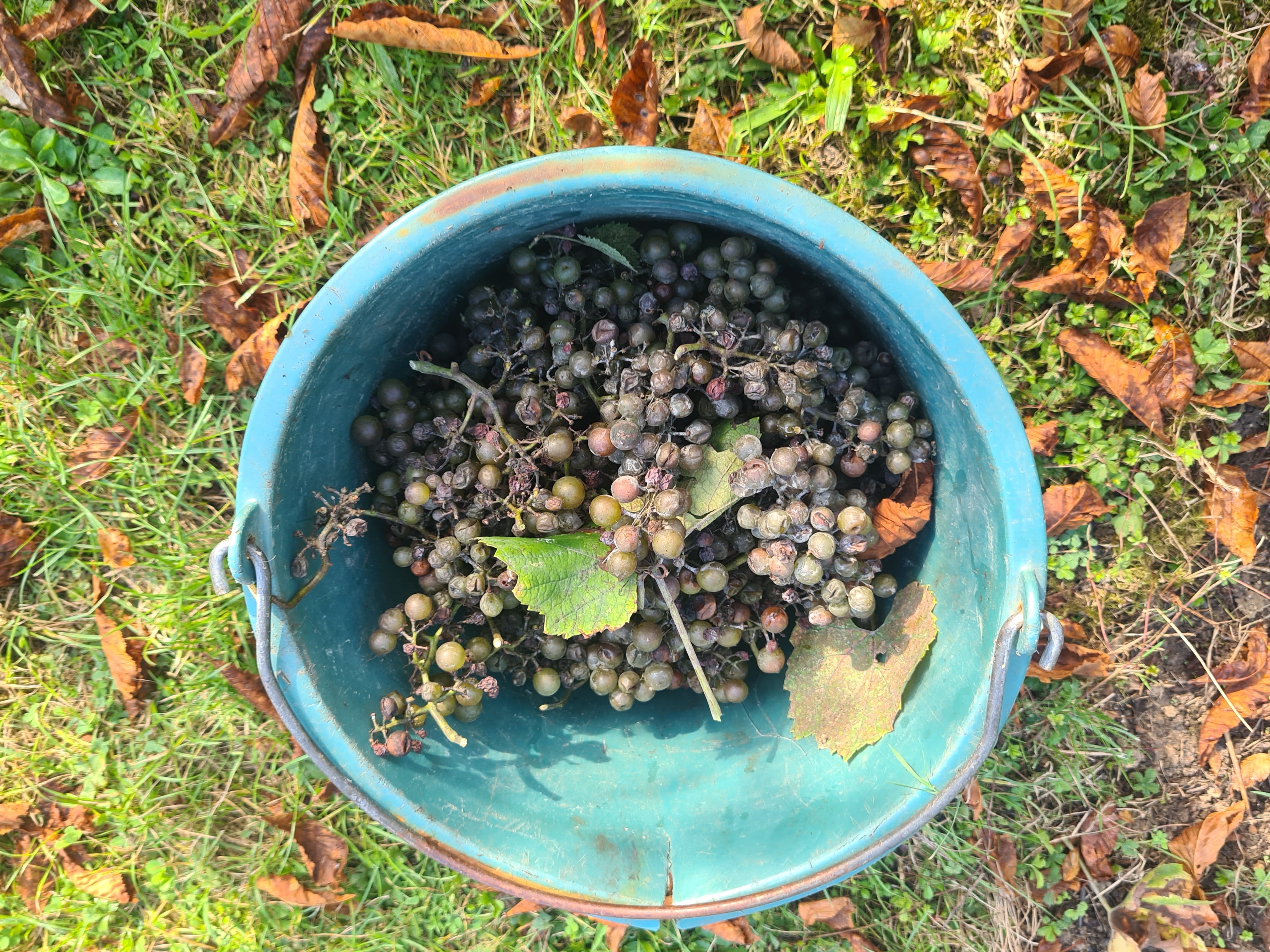 En effet le mildiou et l’oïdium ont eu raison des dernières grappes de raisin de notre vigne. Depuis la semaine dernière, nous coupons les grappes noircies afin de tout nettoyer.
