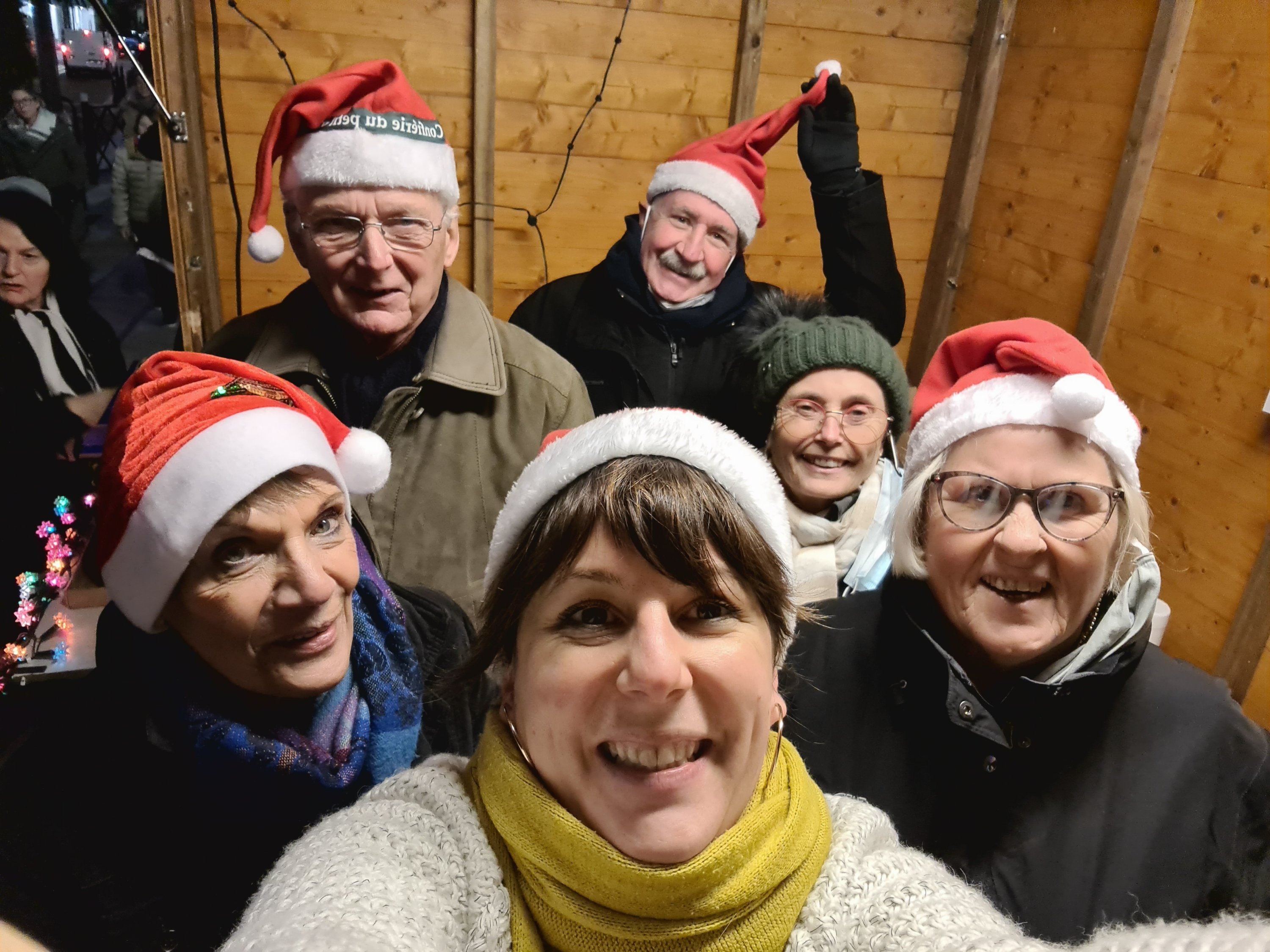 Bilan de cette première journée de vin chaud : beaucoup de vin (28 litres) et de chocolats vendus (plus d’une cinquantaine), beaucoup de sourire et de bonne humeur !
