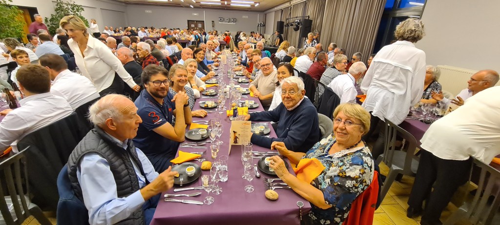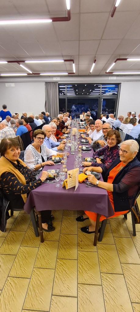 Nous étions ensuite attendus pour le chapitre de la Confrérie de la Gribousine de Malonne, au cours duquel notre Daniel national a été intronisé. Enfin, départ pour la soirée  à Wépion, localité proche de Namur. Soirée intimiste, nous étions 260 couverts.