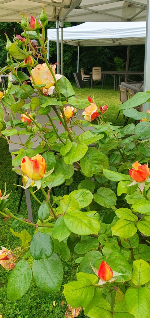 Depuis que le soleil est là le samedi matin et les autres jours en cas de besoin, les jardiniers-vignerons travaillent sur la vigne pour la nettoyer, la surveiller et bien sûr apporter le même soin aux rosiers et aux fleurs qui égaient le devant de la cabane.