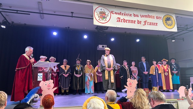 Le week-end du 14 et 15 juin, une délégation de la Confrérie s’est rendue à l’invitation de la Confrérie du jambon sec d’Ardennes. Après la visite de la Place ducale de Charleville-Mézières et du musée de la Marionnette, nous avons rejoint le lieu où se tenait le Chapitre. Le dimanche matin visite très animée, grâce à notre guide, du Château fort de Sedan. La dernière étape était à Charly, chez nos amis champenois Alain Bedel avant notre retour à Nogent. Un week-end de rencontres amicales et de dégustations ardennaises.