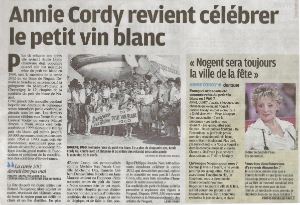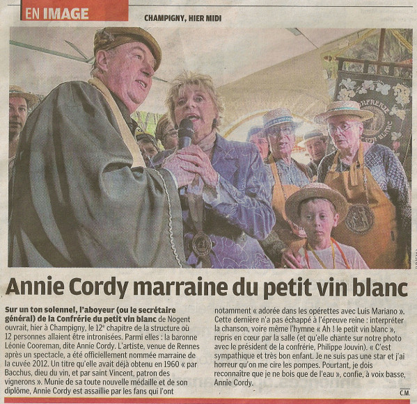 Annie Cordy marraine du Petit Vin Blanc – Article du 26 novembre 2012