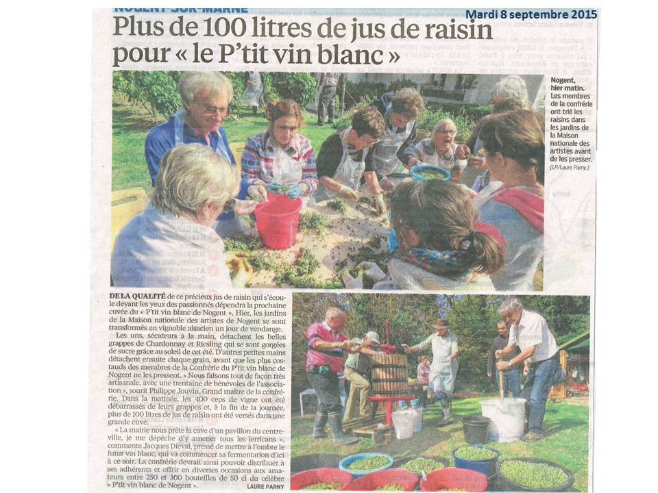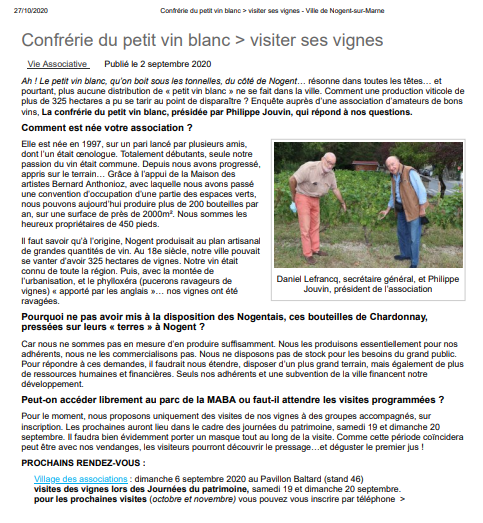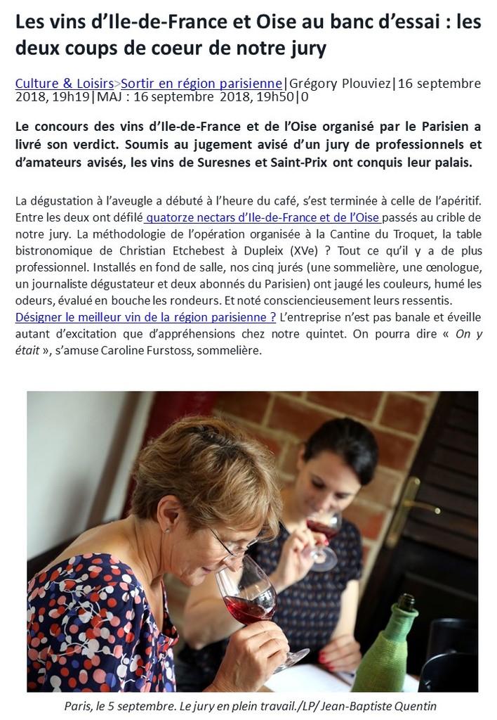 Au mois de septembre 2018 trois articles du Parisien ont évoqué les vins d’Ile-de-France et de l’Oise et la vigne de notre Confrérie.