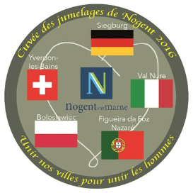 Nogent est jumelée avec plusieurs villes européennes : Yverdon (Suisse), Figuera da Foz (Portugal), Siegburg (Allemagne), Boleslaviek (Pologne). La Confrérie, présente aux dernières cérémonies « anniversaire », a dédié ce millésime aux jumelages