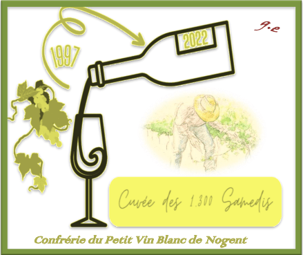 Etiquette réalisée par Micheline Maître-Allain, adhérente de la première heure de la Confrérie et peintre ayant réalisé de nombreuses toiles détenues, entre autres, par le musée de Nogent